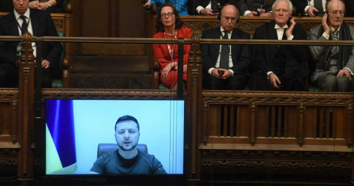 جاء ذلك عبر فيديو أمام البرلمان البريطاني في خطوة تهدف إلى الحصول على مزيد من الدعم لبلاده بعد الغزو الروسي.