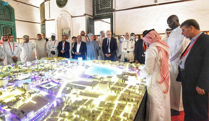 فيما استمع الوزراء والوفود المشاركة في الاجتماعات السنوية إلى شرح عن مشروع إعادة تطوير أحياء جدة التاريخية.