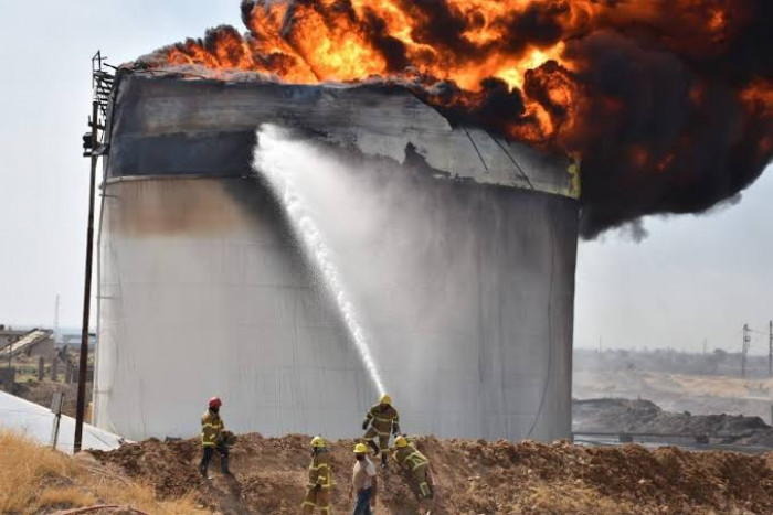 اندلاع حريق في خزانات وقود بمصفاة للنفط بأربيل