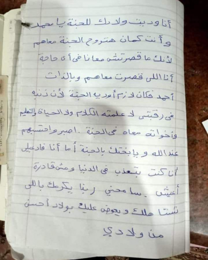 وتركت الزوجة رسالة باكية لزوجها تحاول تبرير ما قامت به، وجاءت الرسالة كالتالي: