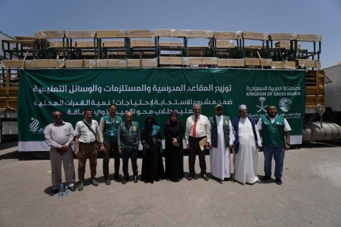 سلمان للإغاثة يوزع مقاعد مدرسية في عدن وحضرموت