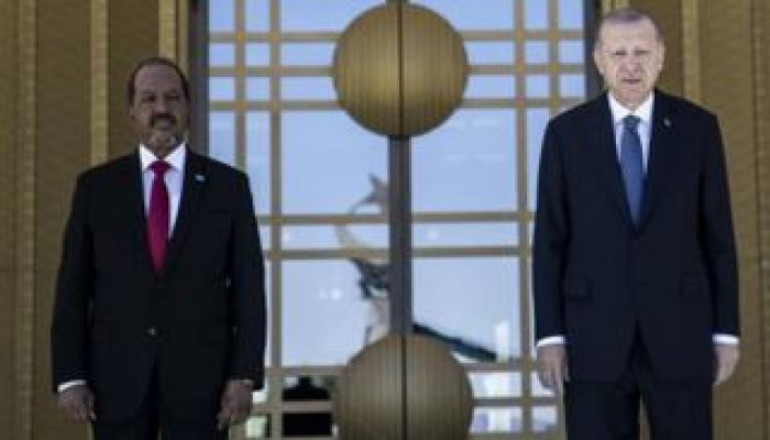 استقبل الرئيس التركي رجب طيب أردوغان، اليوم الأربعاء، نظيره الصومالي حسن شيخ محمود في المجمع الرئاسي بالعاصمة أنقرة.