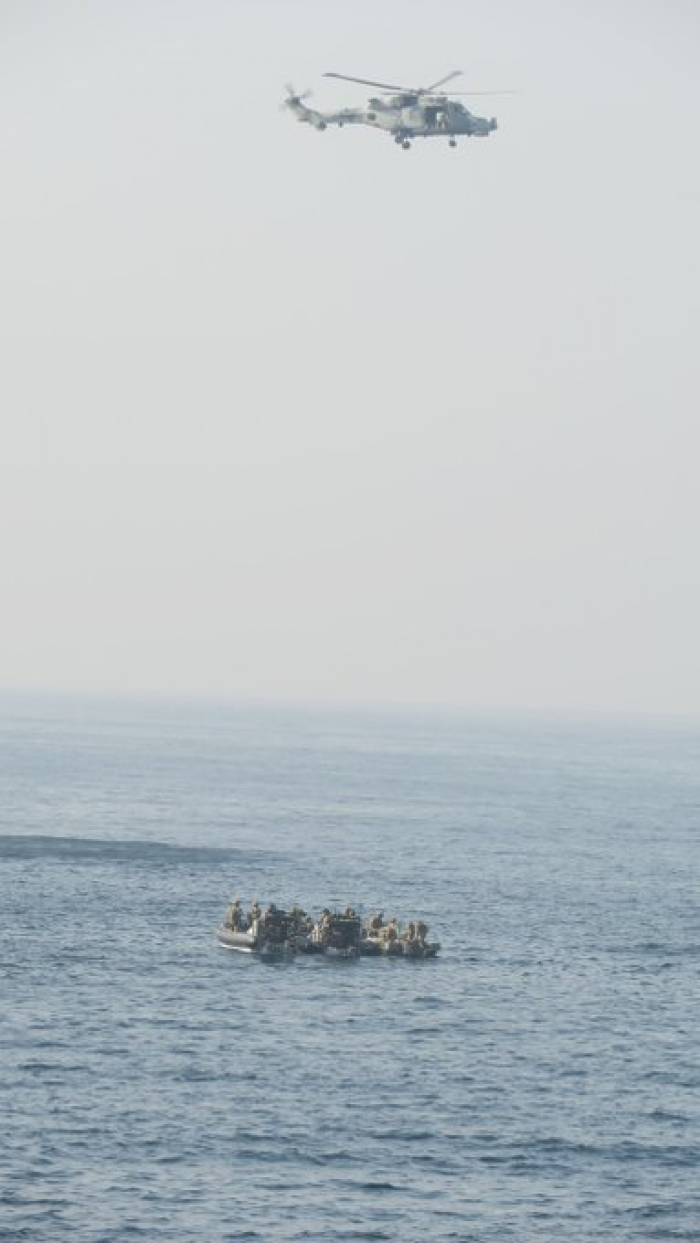 وخلال عملية الاعتراض في فبراير الماضي، دعمت المدمرة غريدلي التابعة للبحرية الأمريكية تلك الجهود من خلال نشر مروحية من طراز سي هوك لتوفير مراقبة هامة أثناء تلك العملية.
