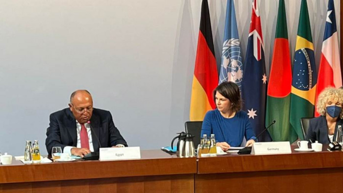ويستضيف الفعالية التي تنعقد حول المناخ في برلين، وزير خارجية الدولة المضيفة ألمانيا أنالينا بربوك، ووزير الخارجية سامح شكري، الرئيس المعين للدورة 27 لاتفاقية الامم المتحدة الاطارية لتغير المناخ.