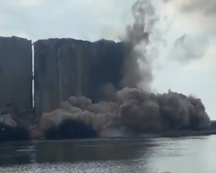 انهيار جزئي لصوامع الحبوب بمرفأ بيروت
