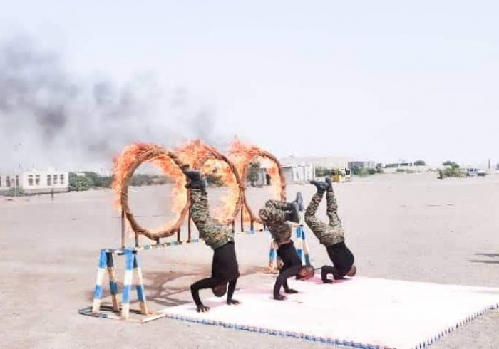 استعرض الجنود - خلال فعاليات حفل التخرج بمشاركة القائد العام لقوات الحزام الأمني العميد محسن عبدالله الوالي، مهارات فنية وقتالية وبدنية أبرزت الجاهزية القتالية.