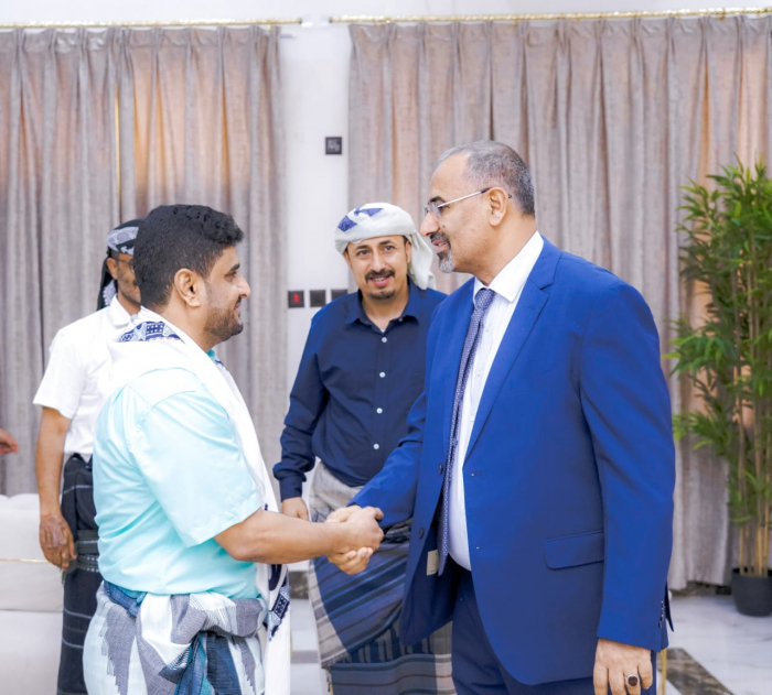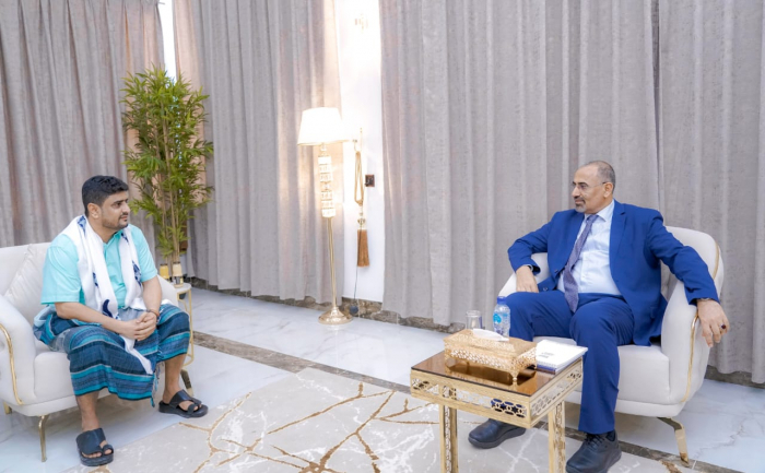 خلال استقباله الكازمي.. الزُبيدي يثني على دور قيادات أمن أبين