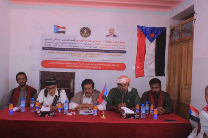 نظمت الإدارة السياسية للهيئة التنفيذية المساعدة للمجلس الانتقالي الجنوبي في وادي حضرموت اليوم الخميس لقاء عاما للشخصيات الاجتماعية والمشائخ والأعيان بالمديريات الغربية الصحراوية (حجر الصيعر - العبر وزمخ ومنوخ).