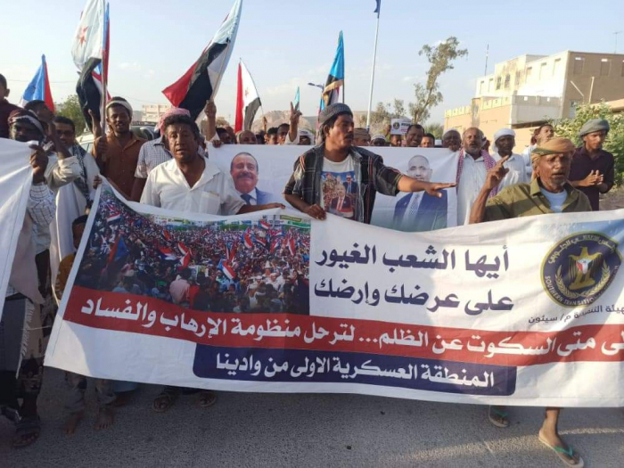 مسيرة شعبية في سيئون ترفع مطالبها للمجلس الرئاسي (صور)