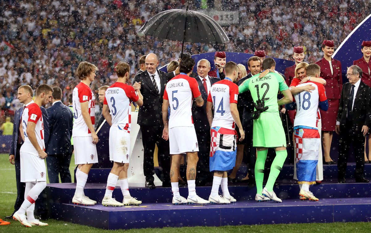 وتواجد إلى جانب إنفانيتنو الرئيس الروسي فلاديمير بوتين، بالإضافة إلى رئيس فرنسا ورئيسة كرواتيا، على المنصة الرئيسية لمراسم التتويج.