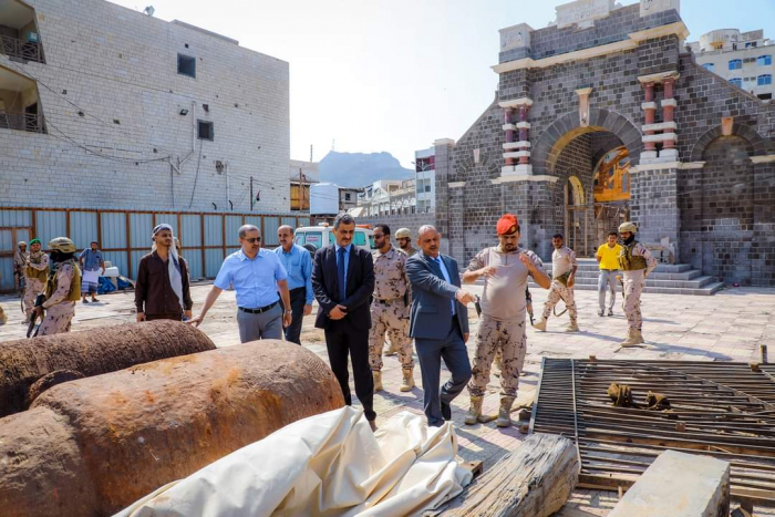 كما تفقد المحافظ المدافع الأثرية لقلعة صيرة، التي انتشلتها الفرق الفنية لإدارة موانئ عدن من قاع البحر عقب غرقها منذ سنوات عدة.
