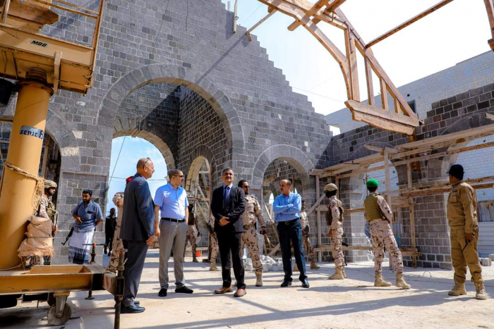 واطلع لملس من ممثلي إدارة موانئ عدن، ومؤسسة موانئ خليج عدن، على مراحل تنفيذ البناء المطابق للمواصفات والمعايير الفنية للحفاظ على القيمة التاريخية للمبنى.