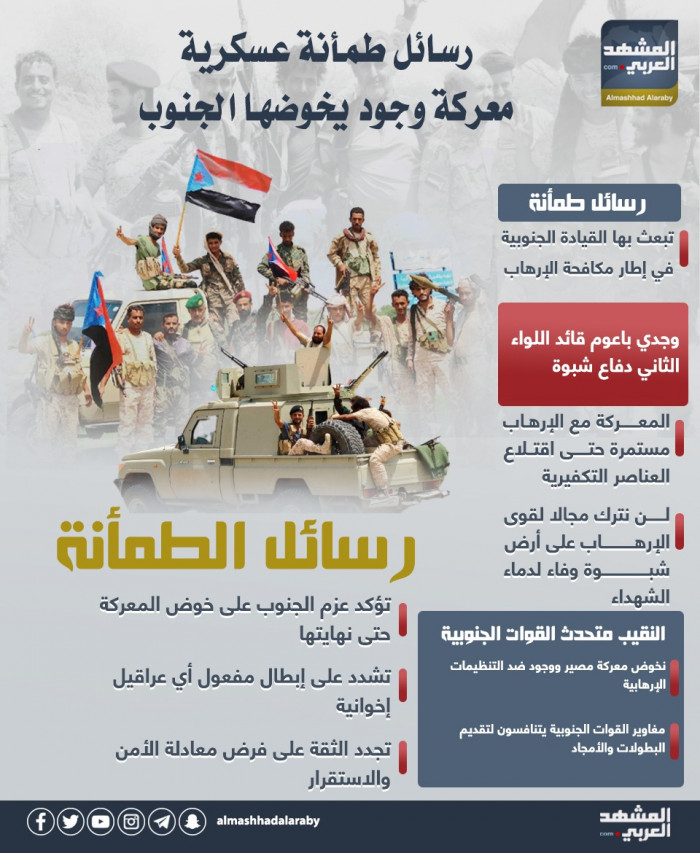 رسائل طمأنة عسكرية.. معركة وجود يخوضها الجنوب (إنفوجراف)