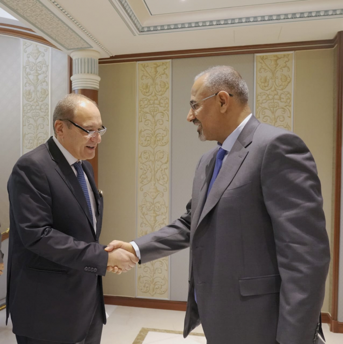 وبحث الاجتماع الدعم المصري لمجلس القيادة الرئاسي، وحكومة المناصفة، التعاون بمجالات التدريب الأمني والتأهيل المدني لتمكين حكومة المناصفة من تطوير أدائها.