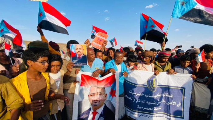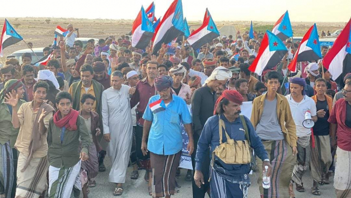 وطالب المشاركون في المسيرة بتنفيذ الشق العسكري من اتفاق الرياض وترحيل أفراد المنطقة العسكرية الأولى التابعة لمليشيا الإخوان الإرهابية.