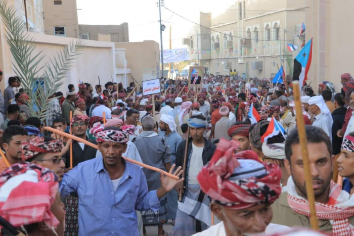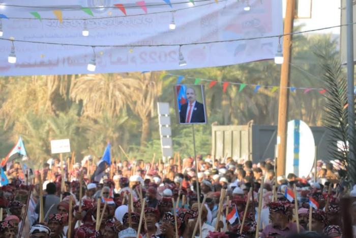 شهدت الفعالية حضورا جماهيريا كبيرا تميز برفع أعلام دولة الجنوب و صور الرئيس عيدروس الزُبيدي.