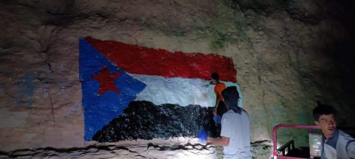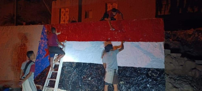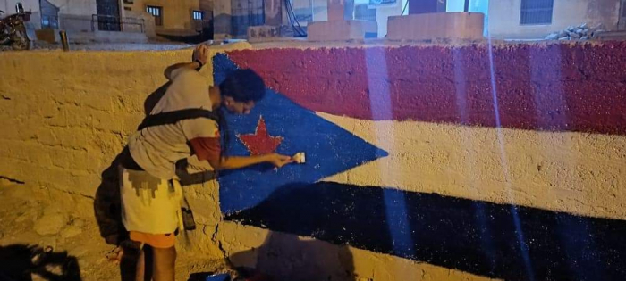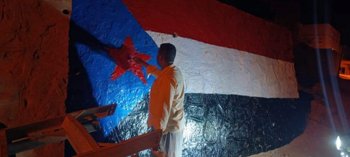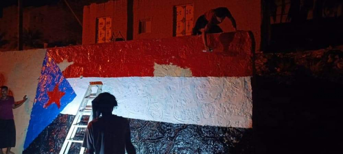 بالصور.. حملة شبابية تطوعية لرسم علم الجنوب بمداخل ساه
