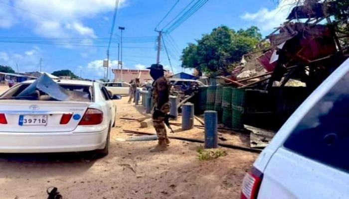 وبحسب ضابط في الشرطة وأحد السكان، فإن "سيارة مليئة بالمتفجرات اقتحمت بوابة فندق في وسط كيسمايو بالصومال بعد إطلاق نار".