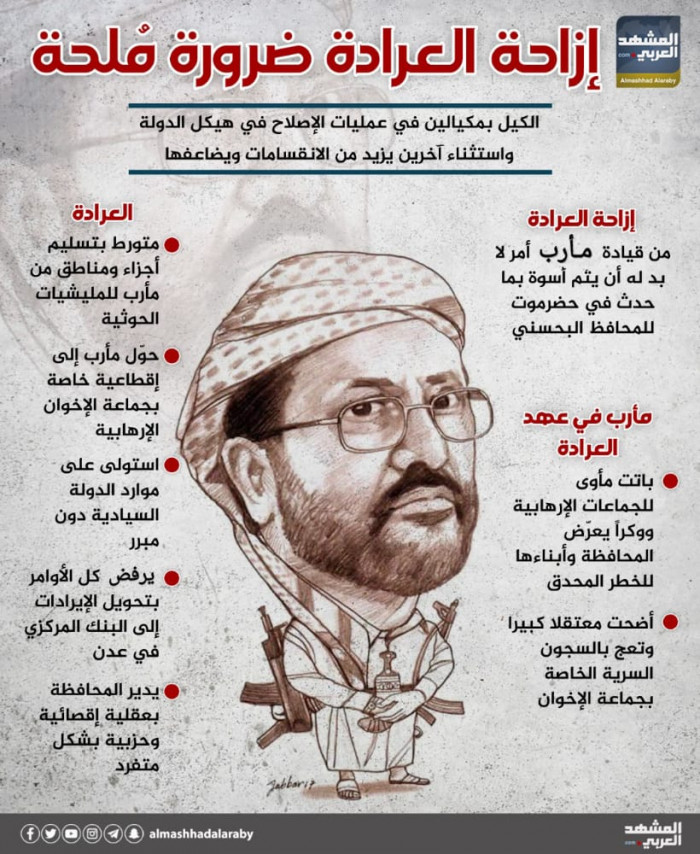 صنع المدعو سلطان العرادة من محافظة مأرب إمبراطورية لقوى الإرهاب وإقطاعية خاصة يتحكم في إيراداتها خارج منظومة البنك المركزي في العاصمة عدن.