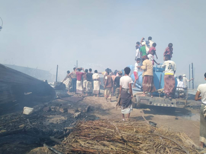 التهم حريق هائل العشرات من المساكن في مخيم الجشة للنازحين الواقع في مديرية الخوخة الساحلية جنوبي محافظة الحديدة.