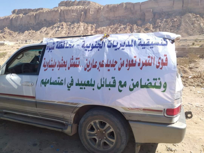 توافدت حشود من أبناء المديريات الجنوبية بمحافظة شبوة إلى عتق متوجهين نحو عارين للمشاركة مع الاعتصام الشعبي لأبناء المناطق الشرقية في مخيم عارين.