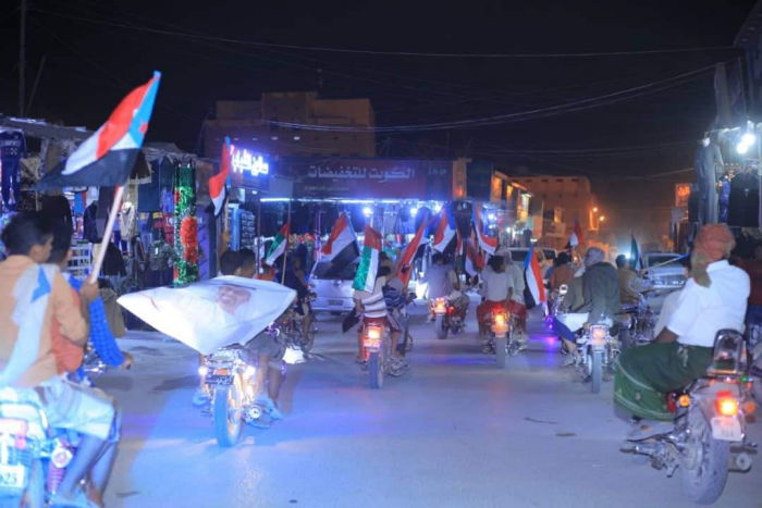 رفع المشاركون في المسيرات الاحتفالية بسيئون والقطن أعلام دولتي الجنوب والإمارات العربية المتحدة، معربين عن تهانيهم لقيادة المجلس الانتقالي الجنوبي ودولة الإمارات حكاما وشعبا بالمناسبتين الوطنيتين.