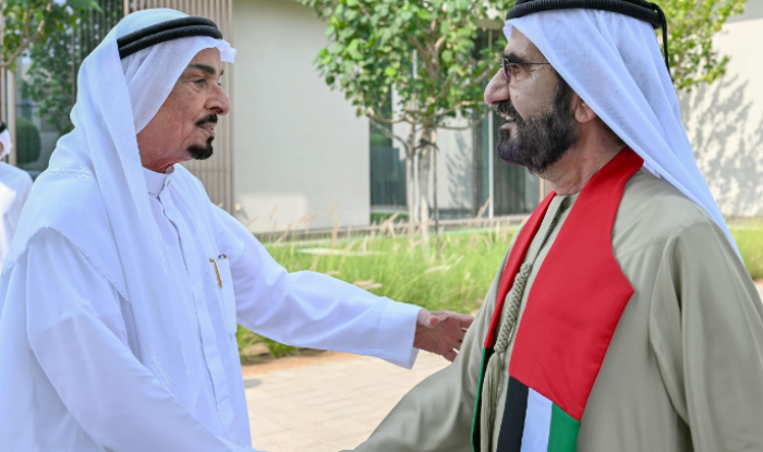 عقد نائب رئيس دولة الإمارات رئيس مجلس الوزراء حاكم دبي الشيخ محمد بن راشد، لقاءً مع الشيخ حميد بن راشد النعيمي عضو المجلس الأعلى حاكم عجمان، وذلك على هامش انعقاد اجتماع مجلس الوزراء اليوم في محمية الزوراء بإمارة عجمان.