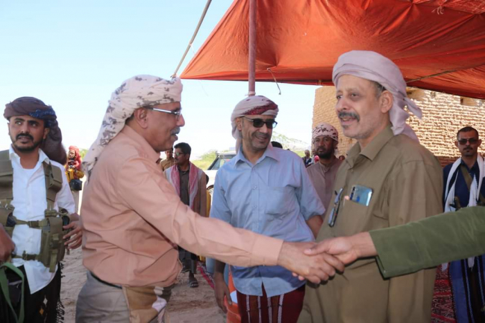 تقدم وفد المجلس علي الكثيري الناطق باسم المجلس الانتقالي الجنوبي والعميد علي الجبواني رئيس الهيئة التنفيذية للمجلس في شبوة، وآخرين.
