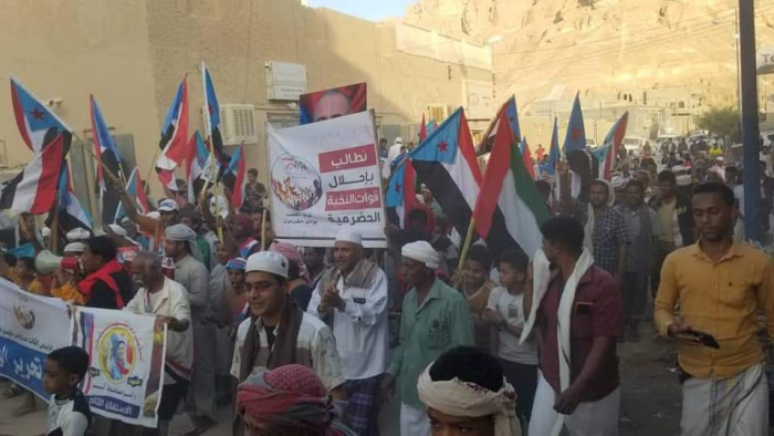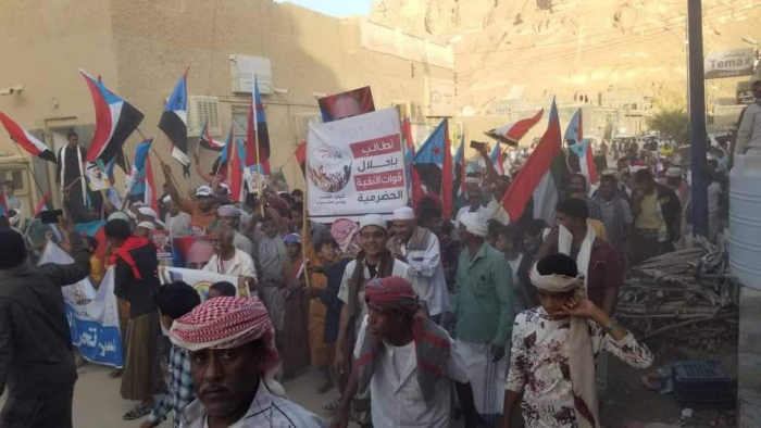 وعبروا خلال المسيرة الجماهيرية عن وقوفهم ودعمهم لقوات النخبة الحضرمية المرابطة بعقبة جثمة، مؤكدين أن الانتفاضة الشعبية مستمرة حتى رحيل كافة قوات المنطقة العسكرية الأولى المحتلة لوادي حضرموت.