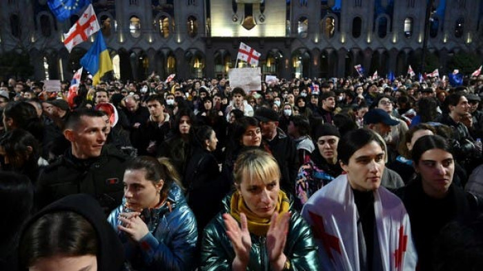 نظم الآلاف في العاصمة الجورجية تبليس، أمس الأربعاء، وقفة احتجاجية لليوم الثاني على التوالي، ونظموا مسيرات أمام البرلمان تنديدًا بقانون "الوكلاء الأجانب" الذي يقول منتقدوه إنه يشير إلى تحول استبدادي.