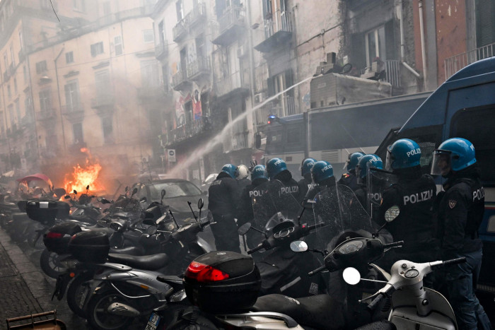 أعلن قائد شرطة نابولي إلقاء القبض على 8 أشخاص على مدار الليلة الماضية بعد اندلاع اشتباكات بين الجماهير في المدينة أمس الأربعاء على هامش مواجهة نابولي وأينتراخت فرانكفورت الألماني في إياب دور الستة عشر بدوري أبطال أوروبا لكرة القدم.