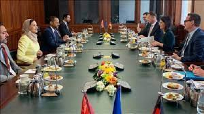 ناقش وزير الخارجية العماني، بدر بن حمد البوسعيدي، مع نظيره الألماني أنالينا بيربوك، أمس الأربعاء، سبل علاقات الصداقة والتعاون المشترك في مجالات الطاقة المتجددة والهيدروجين الأخضر.
