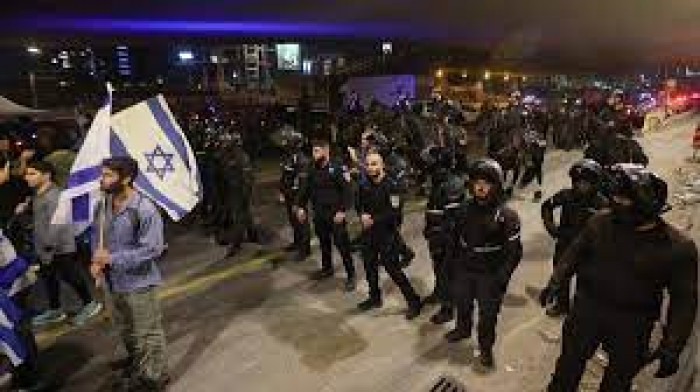 ورفع المتظاهرون لافتات مكتوبة عليها: "أنقذوا الديمقراطية" ولوحوا بالأعلام الإسرائيلية، بينما أشعل بعضهم قنابل دخان.