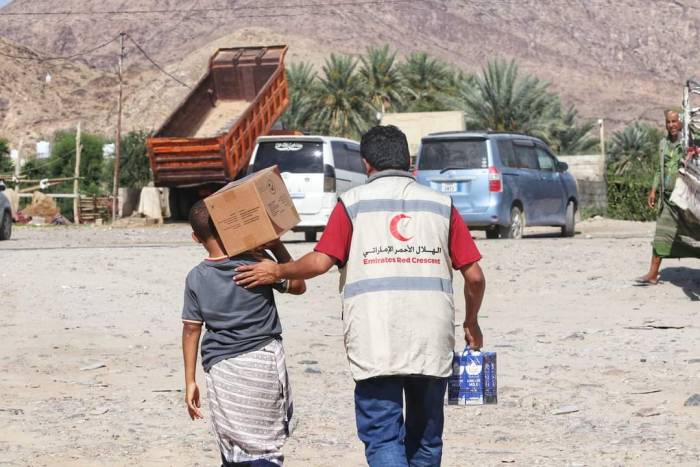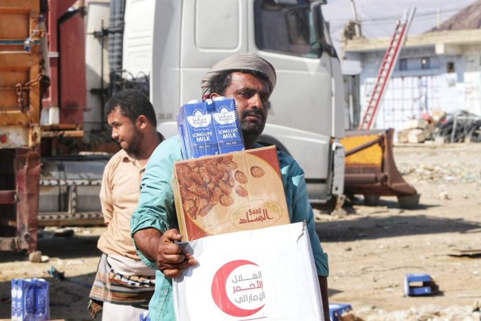 الهلال الأحمر الإماراتي يوزع المير الرمضاني على أهالي بيحان