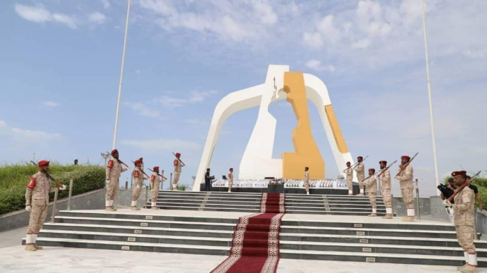محافظ حضرموت يضع إكليلا من الزهور على النصب التذكاري بالمكلا