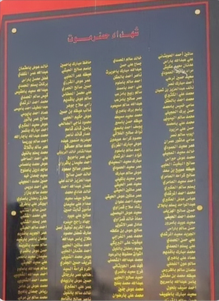 عرض الكاتب الصحفي هاني مسهور صورة من الأرشيف الوطني لقائمة الشرف لشهداء النخبة الحضرمية في معركة تحرير ساحل حضرموت بدعم من القوات المسلحة الإماراتية.
