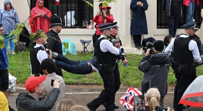ألقت الشرطة البريطانية القبض على زعيم جماعة ريبابليك المناهضة للملكية وعدد آخر من المحتجين الذين تجمعوا في لندن بين الحشود التي اصطفت على جانبي طريق موكب الملك تشارلز الذي تم تتويجه اليوم السبت ملكا لبريطانيا.