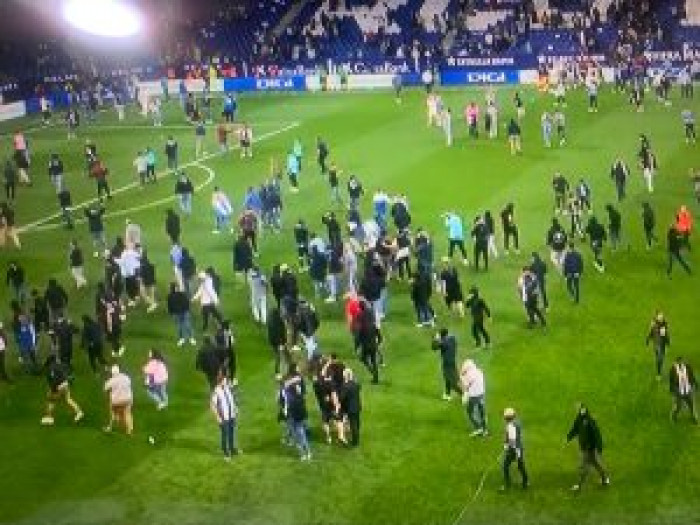 اقتحمت جماهير فريق إسبانيول، ملعب مباراة فريقهم أمام برشلونة والتي انتهت بفوز الأخير برباعية مقابل هدفين في مسابقة الدوري الإسباني.
