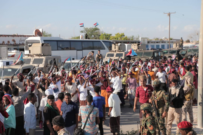 يتقدمهم قيادات.. احتشاد آلاف المواطنين في المكلا لاستقبال الرئيس الزُبيدي