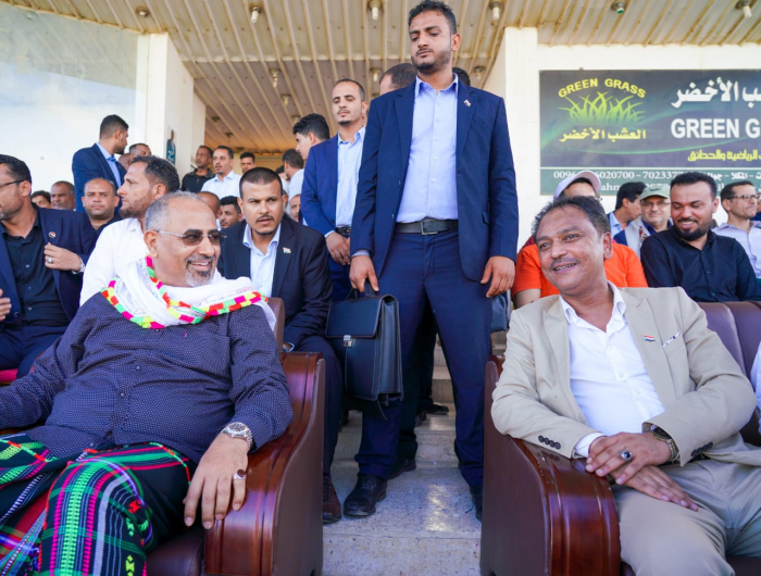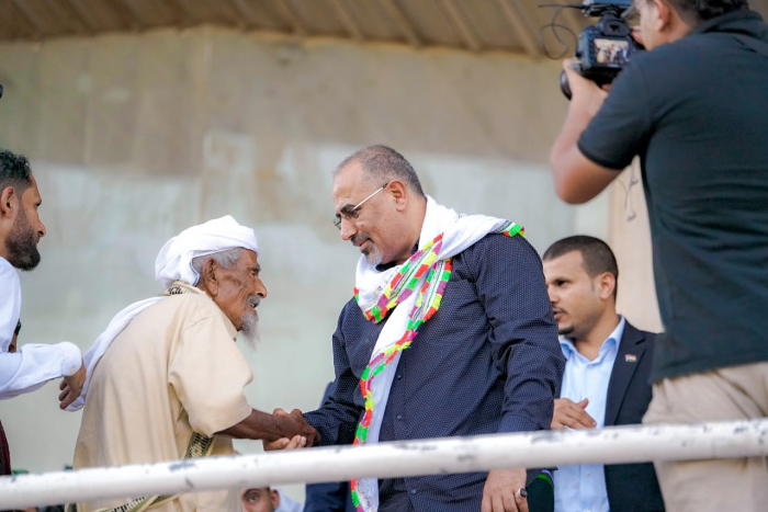 شهد الرئيس عيدروس الزُبيدي، رئيس المجلس الانتقالي الجنوبي، مباراة جمعت فريقي تضامن حضرموت ووحدة عدن على ملعب بارادم في مدينة المكلا.