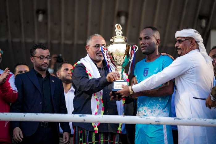 وسلّم الرئيس الزُبيدي في ختام المباراة، لقائد فريق تضامن حضرموت الذي حسم المباراة بركلات الترجيح، كأس الذكرى الـ29 لفك الارتباط، وكأس الوصيف لقائد نادي وحدة عدن.