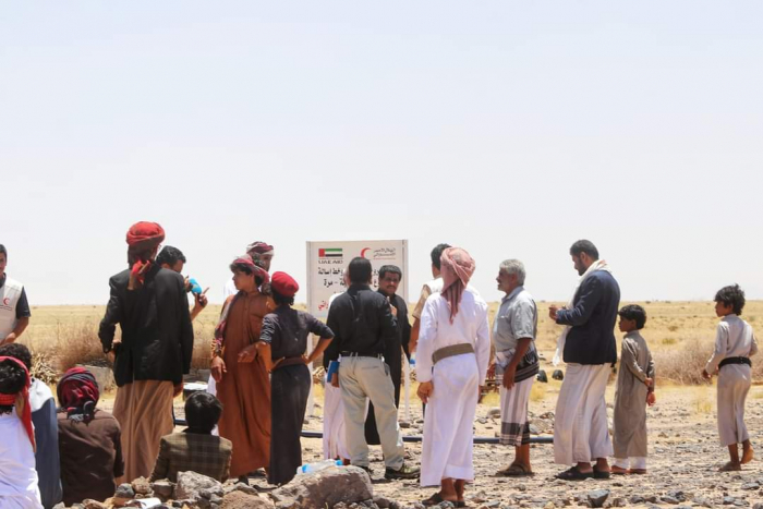 أطلقت هيئة الهلال الأحمر الإماراتي، اليوم الاثنين مشروع مياه منطقة الجريبة، شمال مديرية عتق في محافظة شبوة، ضمن خطة الدعم الإنساني والإغاثي لدولة الإمارات العربية المتحدة، بالتنسيق مع السلطة المحلية.