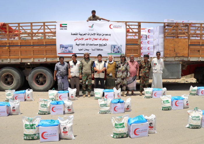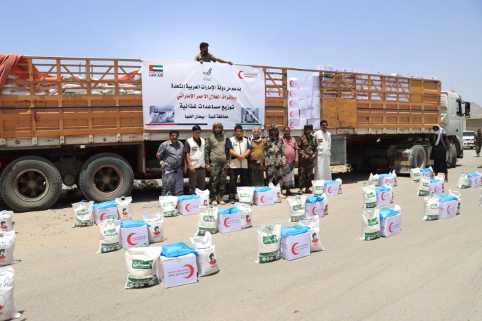 وزعت هيئة الهلال الأحمر الإماراتية اليوم الأربعاء، 32 طنا في مديرية بيحان العليا شمال محافظة شبوة ضمن خطتها الإنسانية والإغاثية عبر الفريق الميداني.