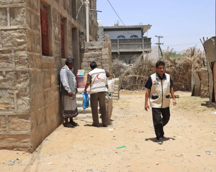 هلال الإمارات يوزع 32 طن مساعدات في بيحان العليا
