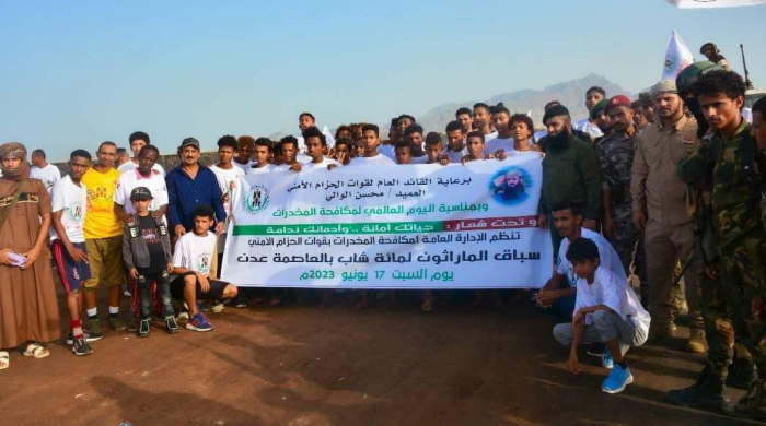 احتضنت العاصمة عدن اليوم السبت، ماراثون رياضي، نظمته إدارتا مكافحة المخدرات والتدريب البدني والرياضي، بقوات الحزام الأمني، بمشاركة 100 متسابق.