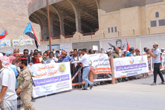 العسكرية الأولى تقطع طريق مسيرة سلمية لمجمع الإدارات بسيئون