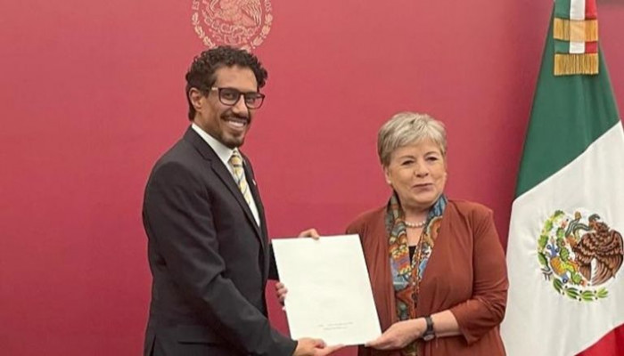 وقد سلّم الرسالة إلى أليسيا بارسينا، وزيرة الخارجية المكسيكية، أحمد حاتم المنهالي، سفير دولة الإمارات لدى الولايات المتحدة المكسيكية.