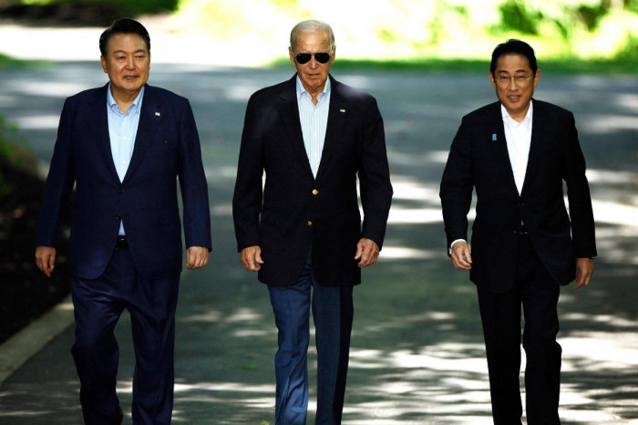 وأعلن زعماء الدول الثلاث المجتمعون في قمة غير مسبوقة في كامب ديفيد بالولايات المتحدة، معارضتهم بشدة أي محاولة أحادية الجانب لتغيير الوضع القائم في مياه منطقة المحيطين الهندي والهادئ.