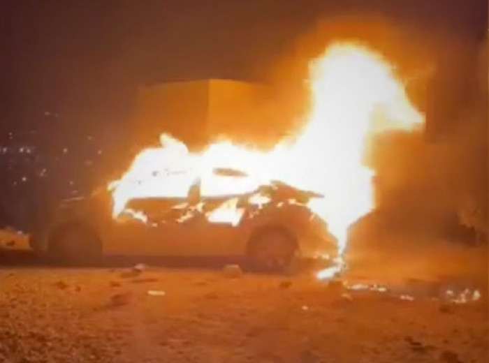 وقرب بلدة ترمسعيا شمال شرق رام الله، أحرق شبان فلسطينيون، مساء اليوم، مركبة مستوطن إسرائيلي.