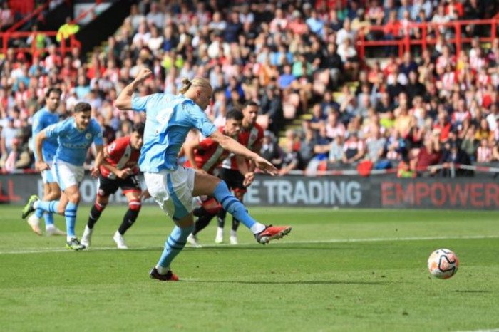 فشل النجم النرويجي إيرلينج هالاند لاعب مانشستر سيتي، في تسجيل ركلة جزاء لفريقه خلال مباراة شيفيلد يونايتد.
